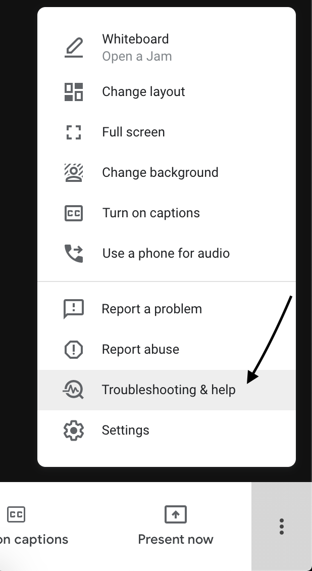 While in a Google Meet meeting, you can now get troubleshooting tips and help directly from the meeting.